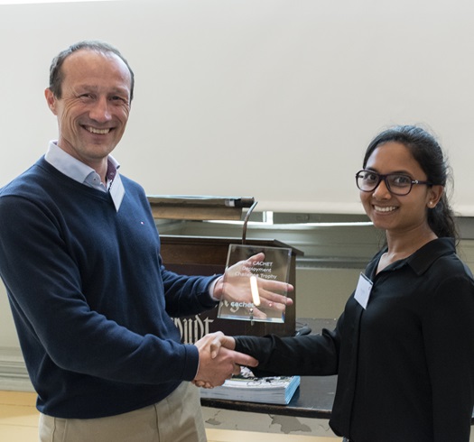 The CACHET Deployment Challenge Trophy was passed on to Tanya Bafna for deploying the Eye-tracking based Cognitive Assessment via Keyboard (E-CAKe) study.
